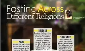 Some traditions mandate fasting (Islam, Judaism, Bahá’í, Jainism).